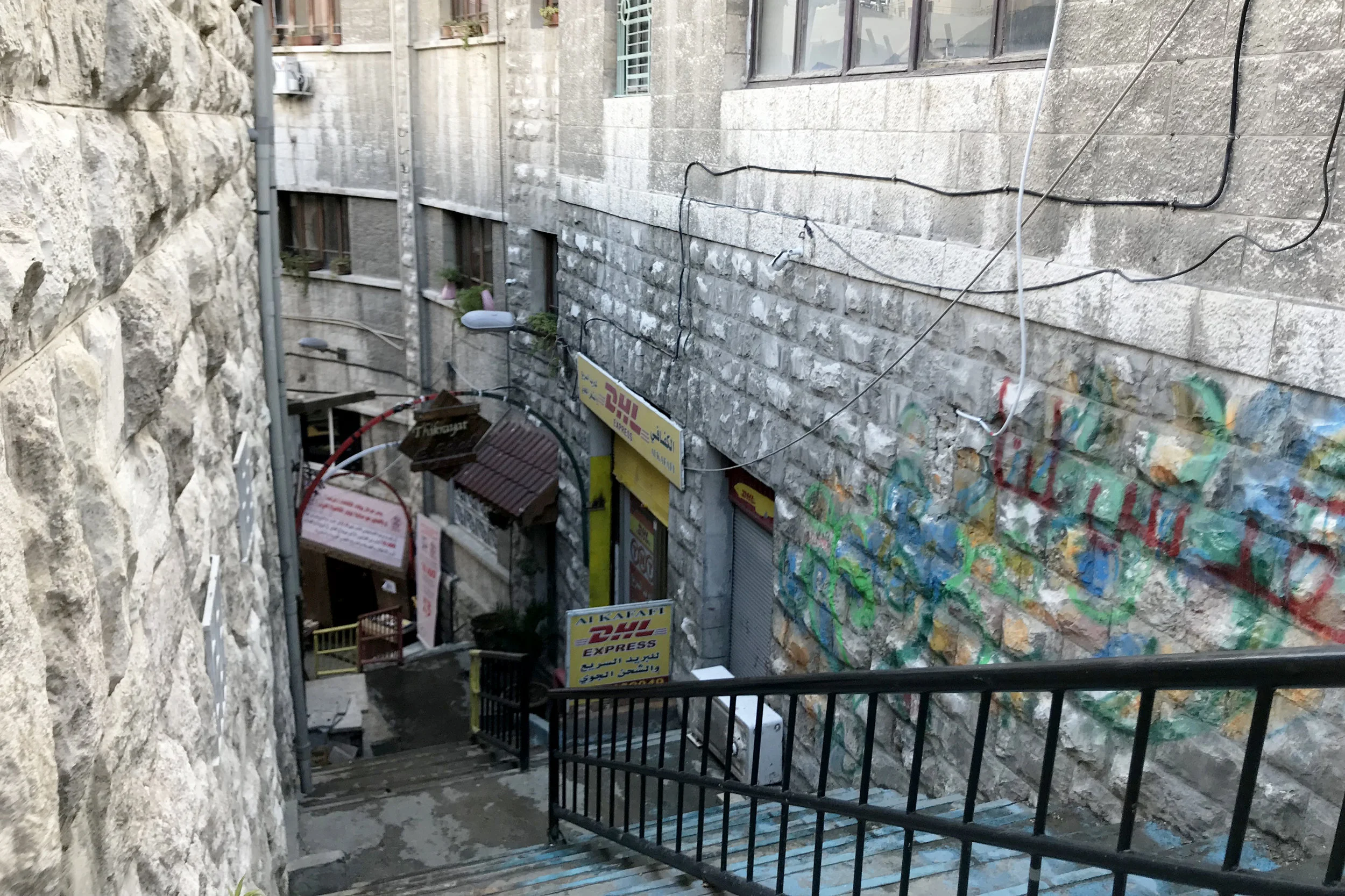 Amman’s public stairs are an integral element of the city’s urban fabric that organically interact with its hilly terrain. Al-Kalha Stair connects downtown Amman (King Hussein Street) with Jabal al-Luweibdeh (Nimr al-‘Idwan Street near Darat al-Funun). It is a public pathway and space that dates back to the 1920s when Amman was a small town. The Stair has maintained its vibrant position within Amman’s cultural and commercial fabric, and accommodates a number of shops and cultural institutions.