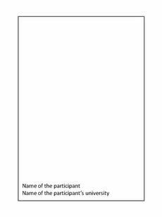 Two copies of the digital sheet must be submitted. One of the copies must be anonymous and shall not display the name of the participant, the participant’s university, or any other identifying marks. The other copy must include the name of the participant and the participant’s university according to the format below.